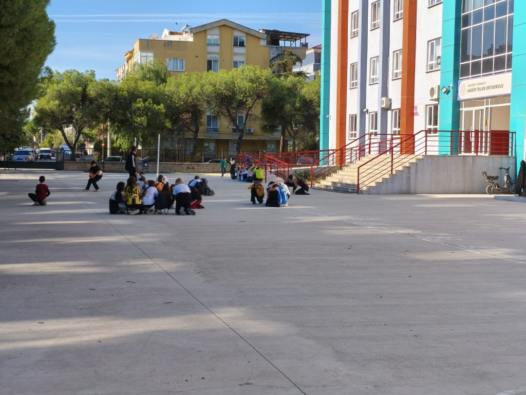 Öğrencilerimizin bahçede toparlanması ile deprem öncesinde, deprem sırasında ve deprem sonrasında neler yapılması gerektiği konularında bilgiler verildi.